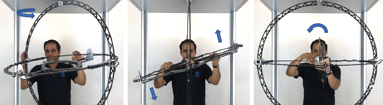 - Once the gimbals are unlocked, evaluate the mobility of the three degrees of freedom (DoF) by following the steps below.
