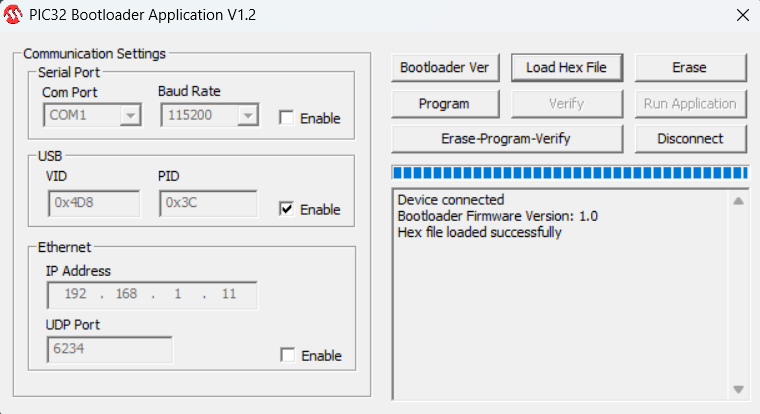 You will also need the PIC32 bootloader application tool which is going to be used to upload the previous HEX file, and which you can download in the next link: